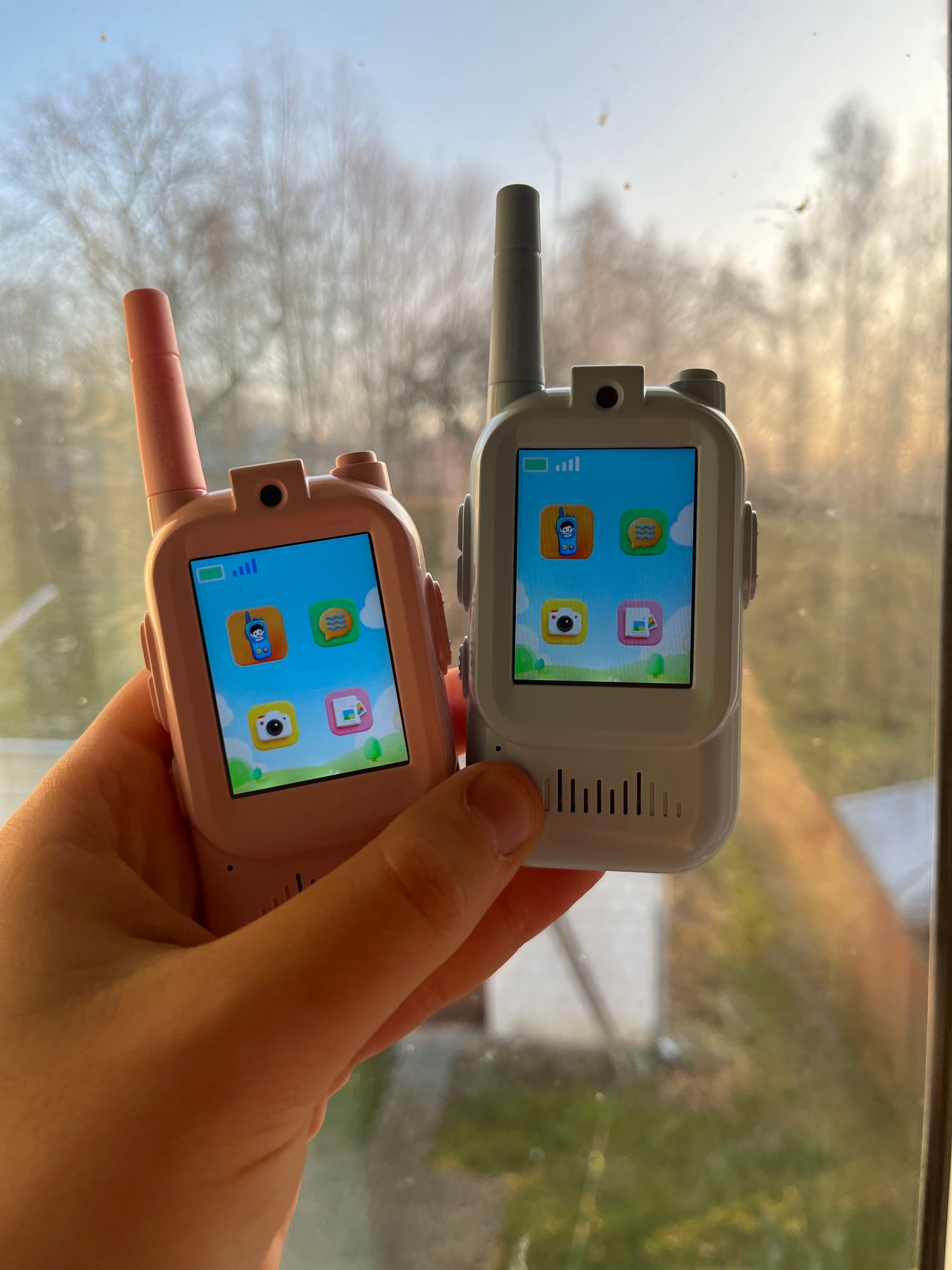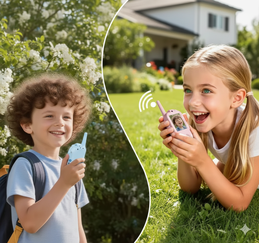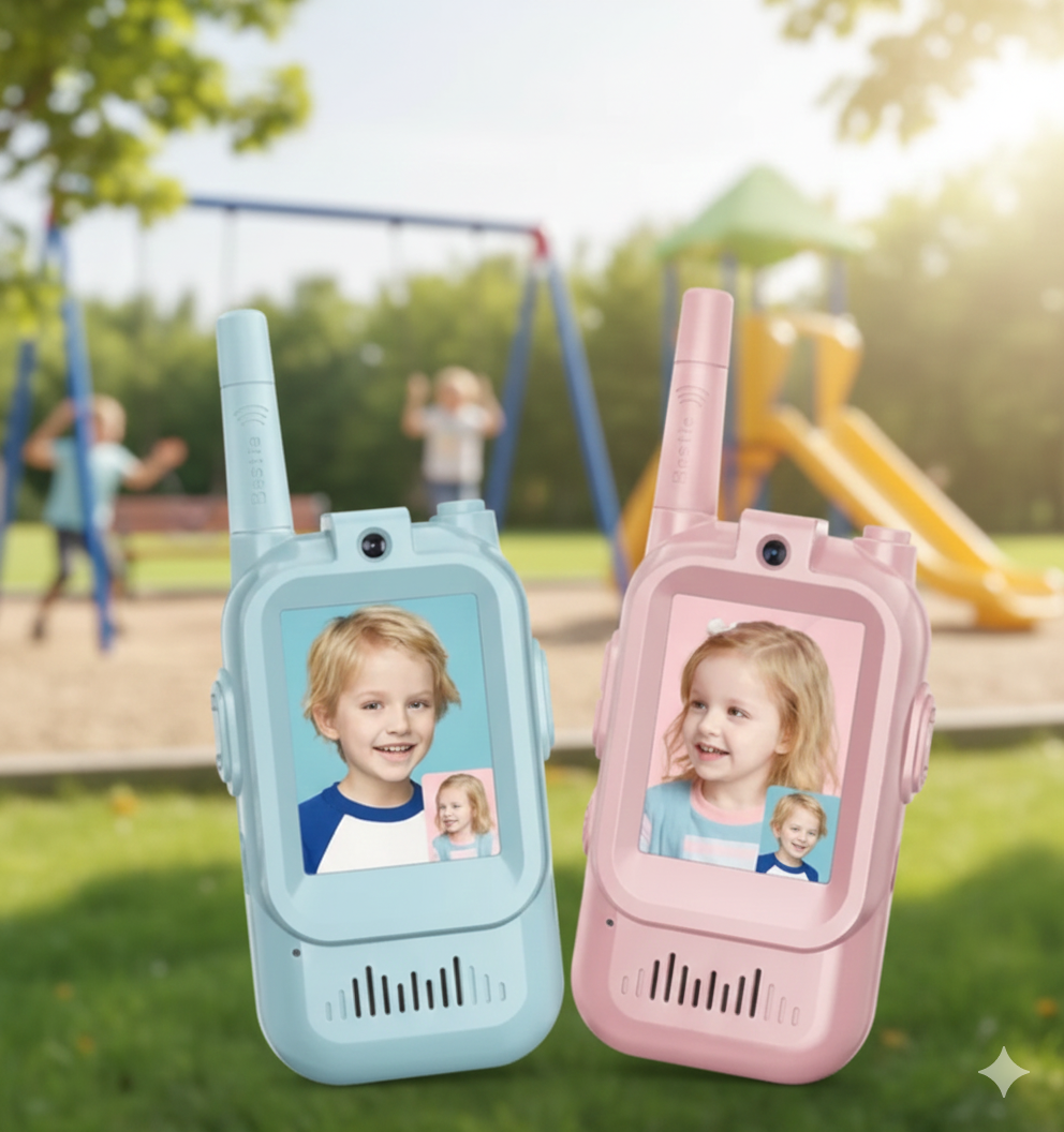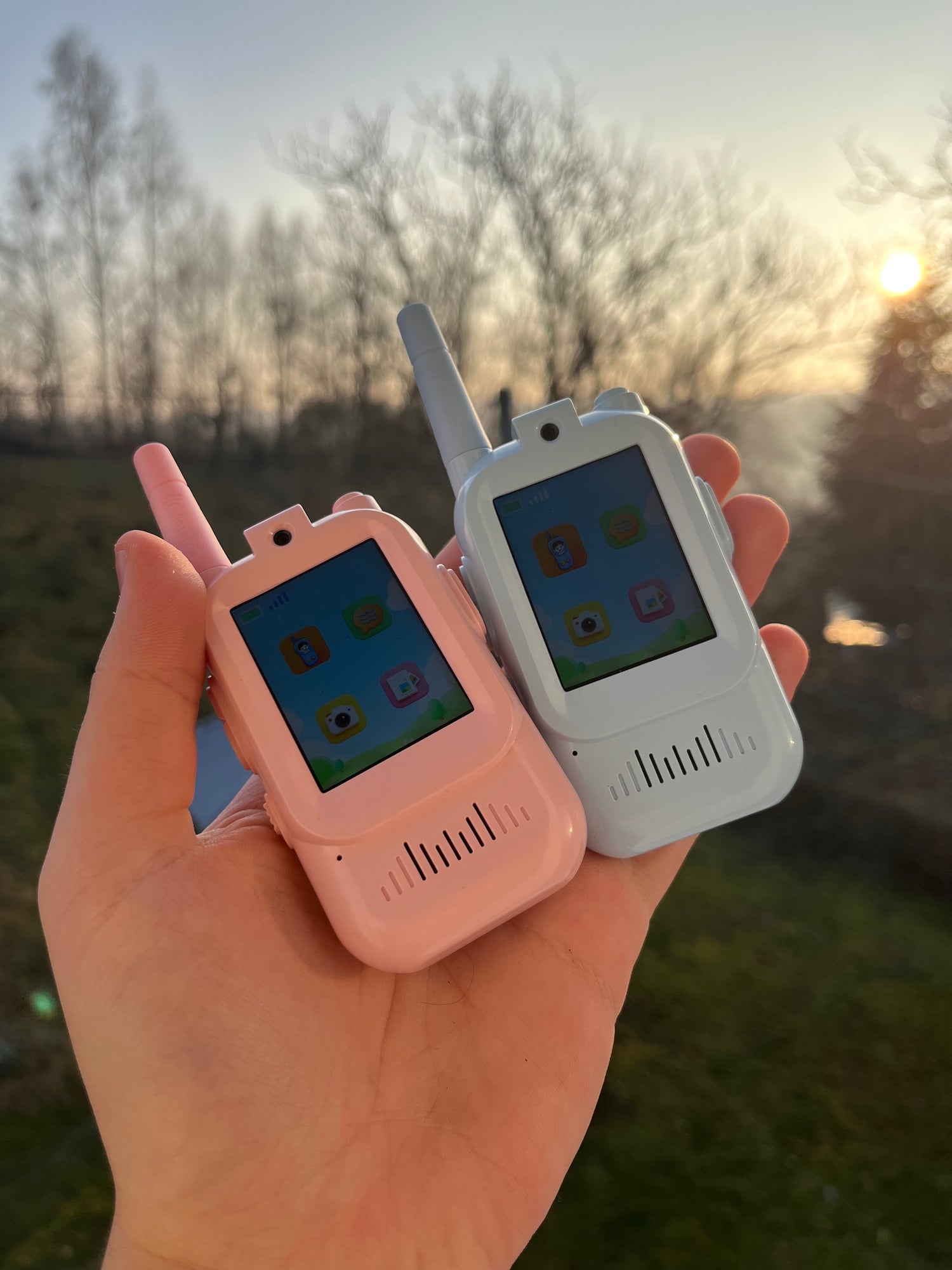 To nowoczesne walkie-talkie z wbudowaną kamerką, które łączy natychmiastową łączność radiową z obrazem wideo — pozwala rozmawiać głosowo, widzieć się na ekranie, robić i przesyłać zdjęcia oraz wysyłać krótkie wiadomości, wszystko bez internetu, bez kart SIM i bez aplikacji. Idealne dla rodzeństwa i rodziny z dziećmi — pewna komunikacja w każdych warunkach, szybka, prosta i niezależna od sieci komórkowej.